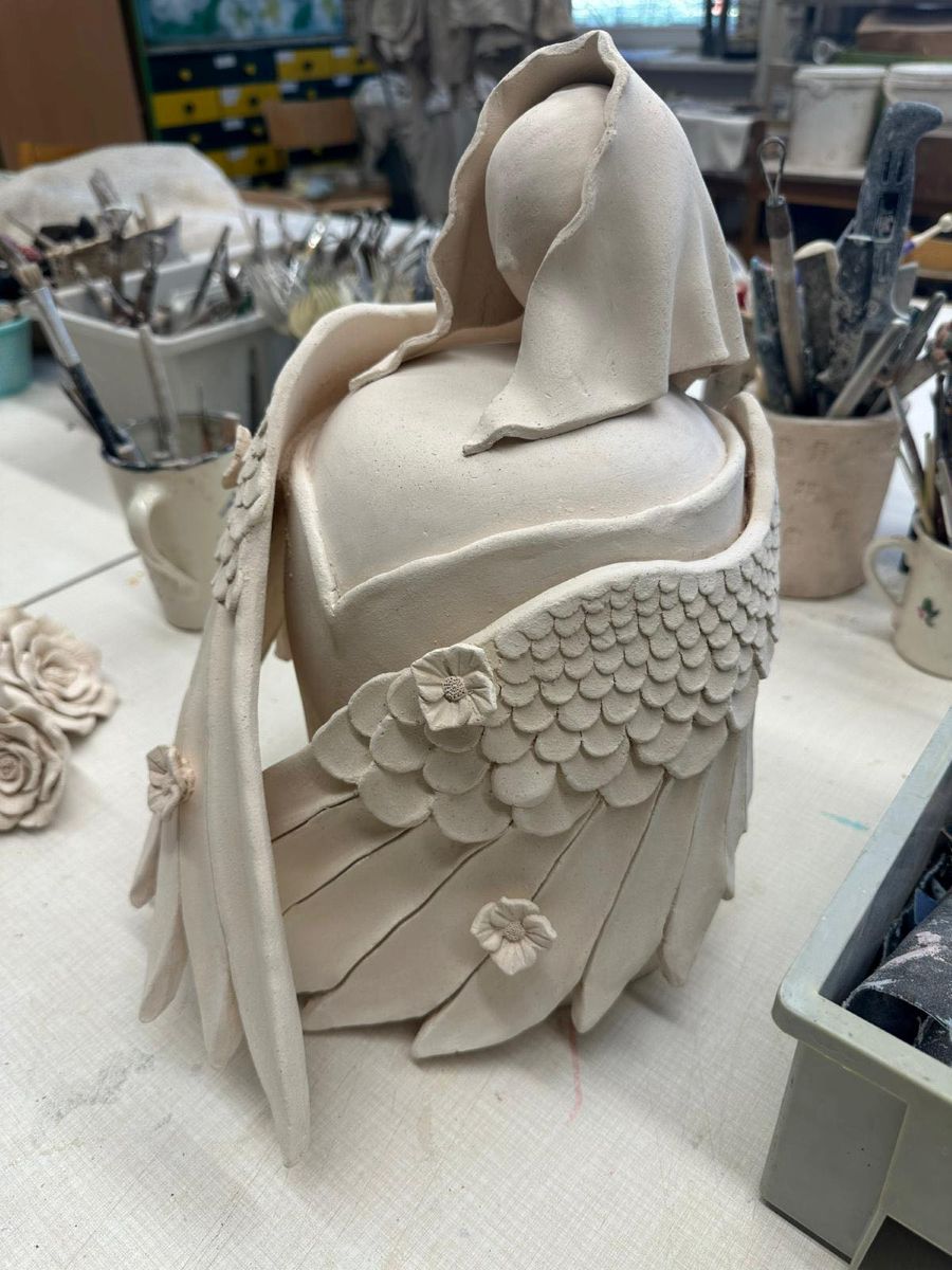 Vznikla dle návrhu ve tvaru anděla tak, aby se do ní vešla úřední plastová vložka.
